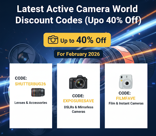 Get the latest Active Camera World discount codes for February 2026, offering up to 40% off on select camera gear, accessories, and bundles—valid sitewide with limited-time promo deals. Stay updated to maximize savings on popular cameras and lenses before codes expire.